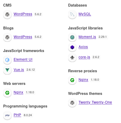 Since we know that the web app is built with WordPress, we can list its various components.