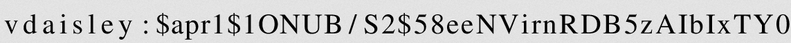 vdaisley:$apr1$1ONUB/S2$58eeNVirnRDB5zAIbIxTY0