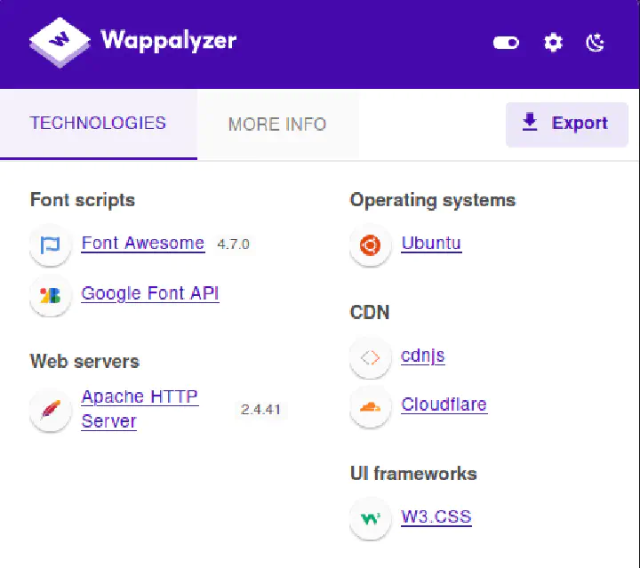 By checking the webpage presented to us with Wappalyzer, we can get to know what technologies are being used: